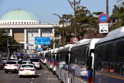 「国民の力」議員らが「親文ゲシュタポ」「親文無罪反文有罪」などの文句が書かれた赤色のプラカードを持って続々と集結し、会議場の前にはこの日の午前から緊張感が漂った。