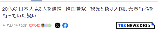 警察は今月9日、ソウル・江南のホテルで20代の日本人女性3人を性売買処罰法と出入国管理法違反の容疑で現行犯逮捕した。3人は今月初めに観光目的と偽って売春目的で韓国に入国したとされ、出入国管理事務所に身柄が引き渡された。