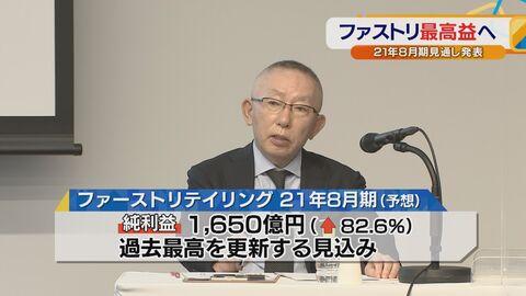 ★今期の業績予想について、過去最高益と発表しました。ユニクロなどを運営するファーストリテイリングが発表した2021年8月期の連結の業績予想は純利益が過去最高益となる1,650億円、前の期より82.6%増える見通しです。巣ごもり需要による室内用の衣服や、快適さを売りにしたエアリズムマスクなど、新型コロナの感染拡大に対応した商品の売れ行きが好調だということです。