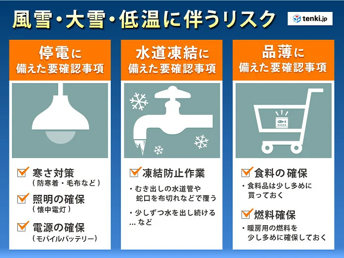年末にかけて、記録的な大雪になる恐れがあります。気象情報・交通情報をこまめにチェックし、車の立ち往生など、万が一の備えをしておきましょう。西でやってください