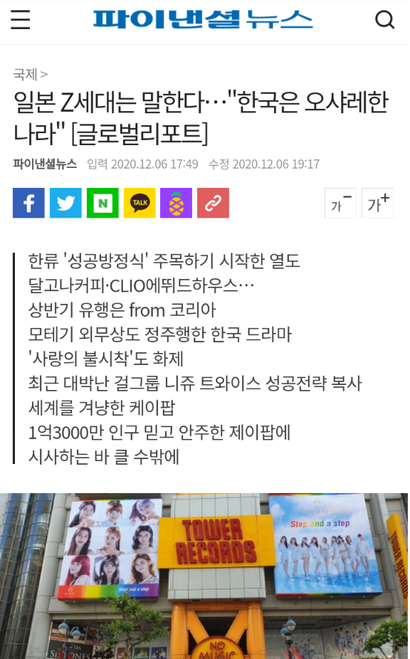 한류 세계적인 선도... 일본 Z세대가 부러워해