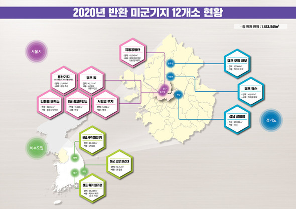政府は11日、米国と第201回駐韓米軍地位協定(SOFA)合同委員会を画像で開き、ソウルと京畿一部、タラナム、慶尚北道浦項、江原太白などにある米軍基地の12箇所を取り戻すことに合意したと発表した。