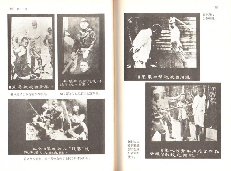 잔혹한 사진들 중 일부는 다름아닌 쪽바리 기자들이 촬영하여 본국에서 검열 처리된 도장도 있다. 당시 난징에서 벌어진 효수 장면을 중국인들이 했다면, 굳이 일본에서 검열했을 이유도 없고, 필요도 없다.