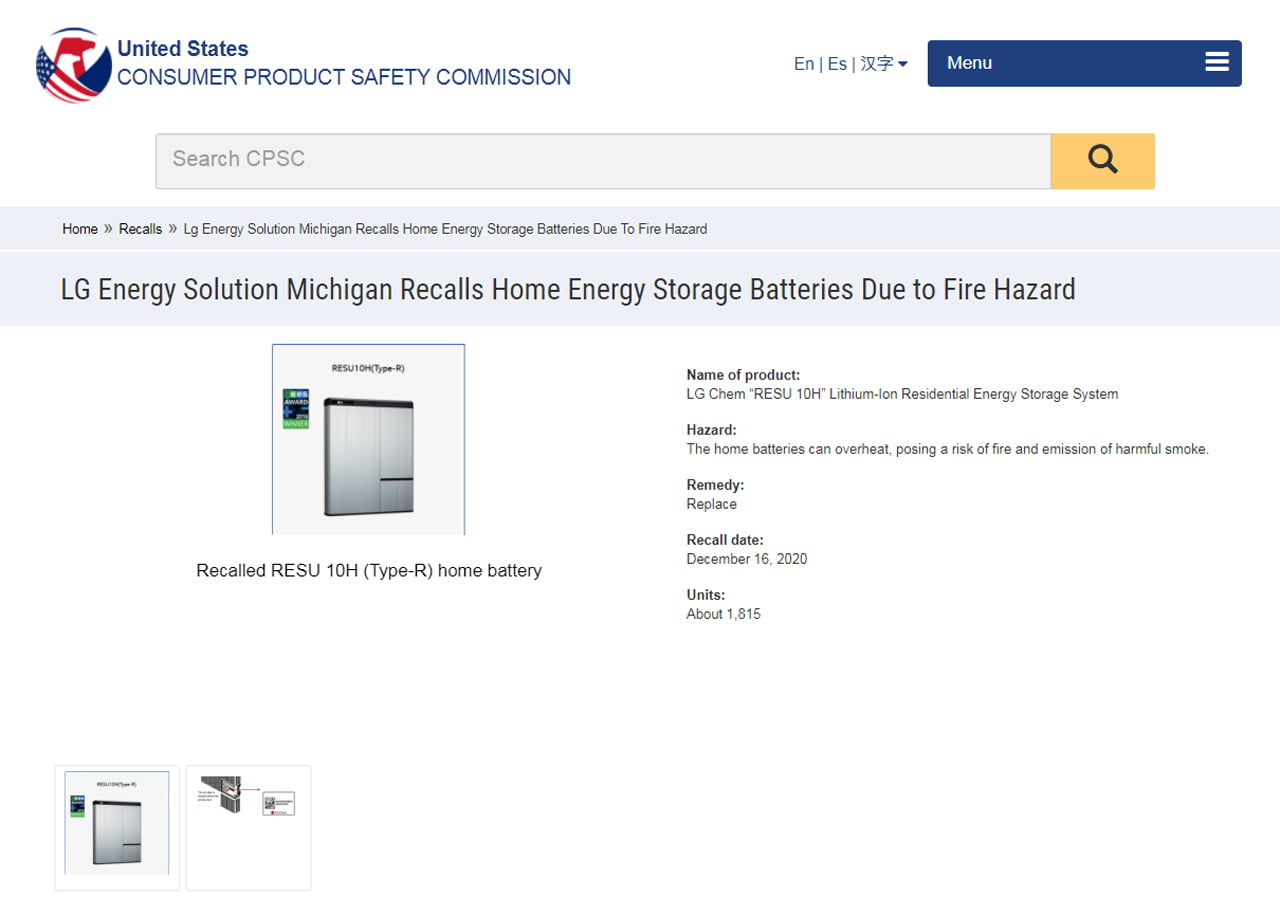 同紙によると、LGエネルギーソリューションは、オーストラリア当局から正式発表がされるまではリコール対象モデルを公開はしないが、米国でリコールが行われる「RESU 10H」モデルと同様のモデルであると推測されるという。