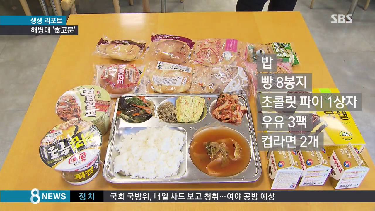 아래 사진의 음식을 한번에 다 먹지 못하면 선임이 산 음식을 먹지 못한다는 이유로 마구 때리는게 한국 해병대의 유구한 전통입니다. 구타를 당하다 보면 저기의 음식을 다 먹을 수 있게 된다고 합니다.