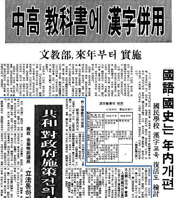 まぁ、それは表向きで、漢字教育世代が、ハングル教育世代に対して、「漢字も読めないの?」と、マウントをとる可能性を危惧しているんでしょう。そういう社会だから…漢字を捨てて過去の歴史がわからなくなったのが韓国が愚民になった一つの原因でもあるから良い事だと思うよ。