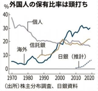 외국인, 민주당 유대인 파충류의 일본 기업 소유 지분율