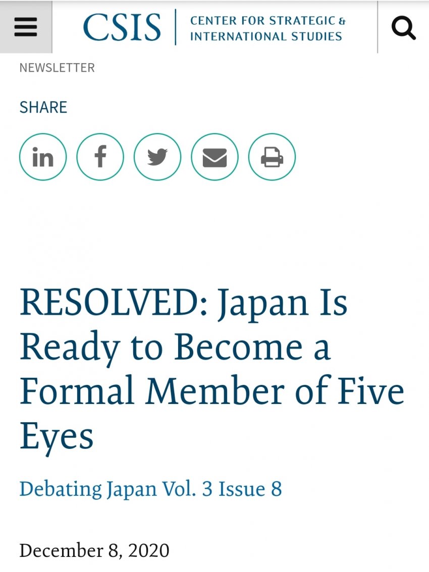 미국 최대 싱크탱크인 csis의 아미티지-나이 보고서에서도 일본의 파이브 아이즈 가입을 주장했다. 특히 조지프 나이 하버드대 교수는 미국 민주당에서도 영향력이 강한 학자다