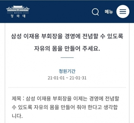 「サムスンの李在鎔副会長は、これからは経営に専念できるよう、自由の身を作るべきだと思います」というタイトルの請願文は、1日に大統領府の掲示板に掲載された。