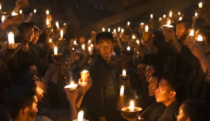 (戦時中物資が枯渇して蝋燭でさえ貴重品で日本人でさえまともに使えなかった史実を無視して朝鮮人が盗んでしか入手し得ない蝋燭を大量に灯すという)