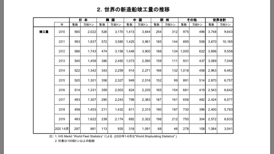 https://japanese.joins.com/JArticle/273797でも全部赤字だろ、造船会社全部で10兆円以上の借金が有る、国民の税金でゾンビ企業を延命させてるだけ、先進国、法治国家なら全部倒産してるわ。