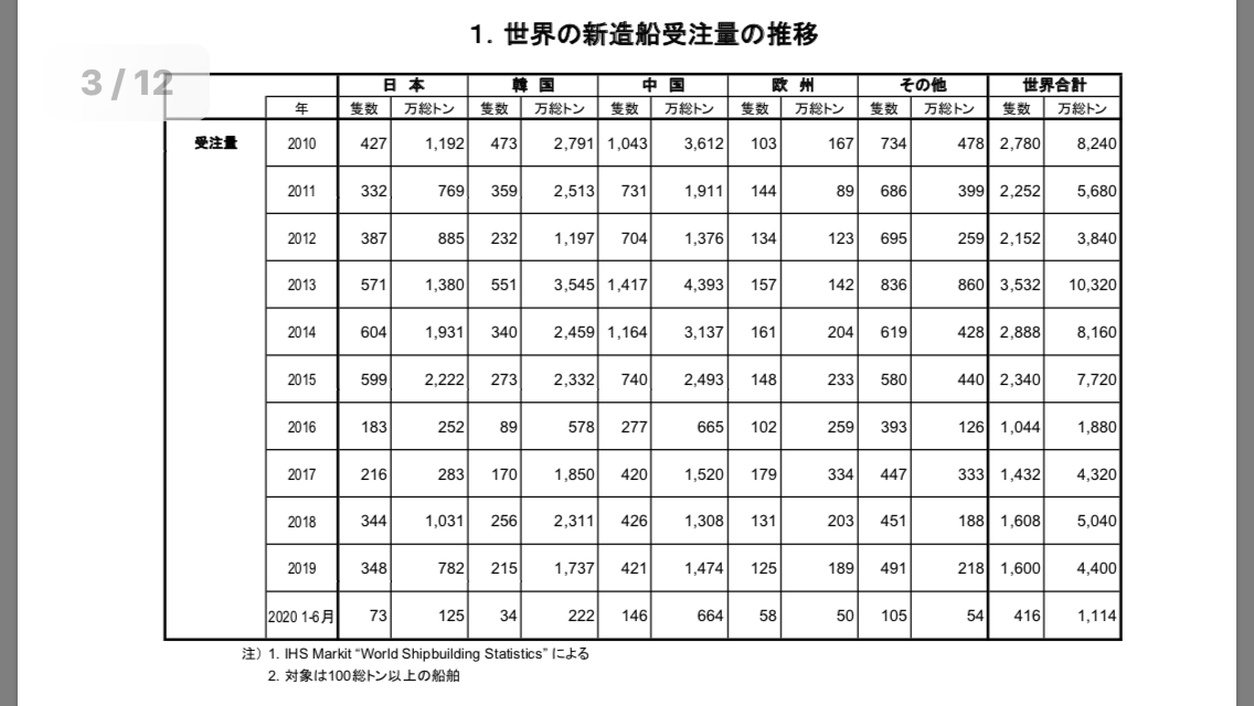 ところが、船舶の発注者や商権ホルダーには”おいしい”ビジネスなので、韓国に発注が増える構図。