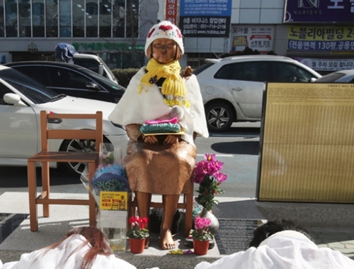 少女像を守る釜山市民行動など釜山地域の市民団体は28日午後、釜山少女像前で記者会見を開き、「韓日慰安婦合意を完全に廃棄しなければならない」とし「戦争犯罪を犯した加害国の日本は一度たりとも謝罪したことがないのはもちろん、歴史的事実を否定して反省のない態度で一貫している」と話した。