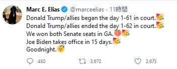 大統領選の結果を受け入れず、不正選挙だったと立証されていない主張を続けているトランプ大統領はツイッターで、また共和党候補を不利にするための不正があったようだとツイートした。