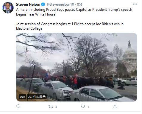 アメリカの連邦議会は6日午後、米大統領選の投票結果を認定するため上下両院合同会議を開いた。州ごとに選挙人団の投票を開票し、ジョー・バイデン次期大統領とカマラ・ハリス次期副大統領の勝利を最終認定する手続きが始まった。しかし審議が始まって間もなく、ドナルド・トランプ大統領の支持者たちが議事堂に大挙して押し寄せ、「トランプを支持する」などと唱えながら武器を手に議事堂内に侵入した。