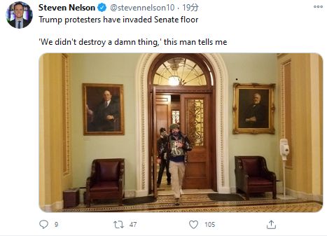 そこにアンティファが紛れ込んでやらかしたんだろうね【米大統領選2020】 連邦議会、結果認定の審議 トランプ氏支持者たちが議事堂侵入