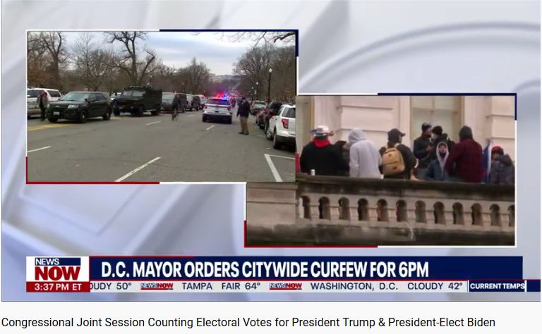 混乱の発生を受け、首都ワシントンDCの市長はこの日の午後6時から翌日午前6時までの外出禁止令を発動した。