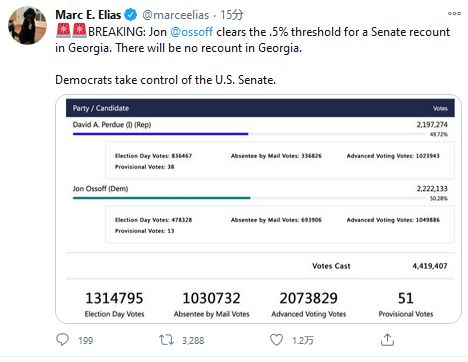 https://www.axios.com/twitter-removes-trump-tweets-f198f970-c9f8-469d-9b34-13429aa26320.html米上院選のジョージア州決選投票、2議席目も民主党当確 上下院制す