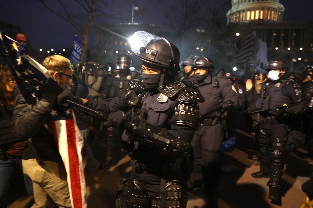 バリケードの複数の層を破壊した後、トランプ支持者は大統領選挙のジョー・バイデンの勝利を覆すことを要求し、米国議会議事堂の階段で連邦警察官と衝突した。