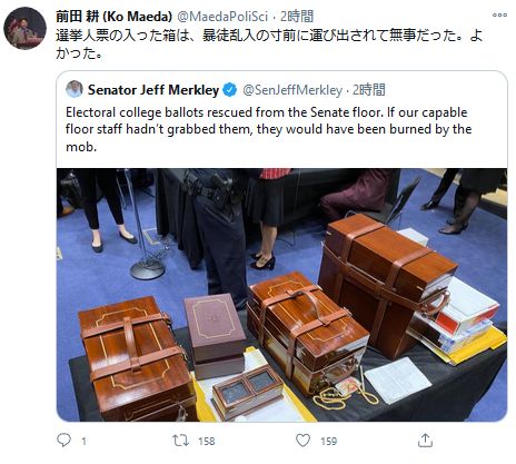 選挙人投票の集計を行う予定だったペンス副大統領も議事堂から退避した。