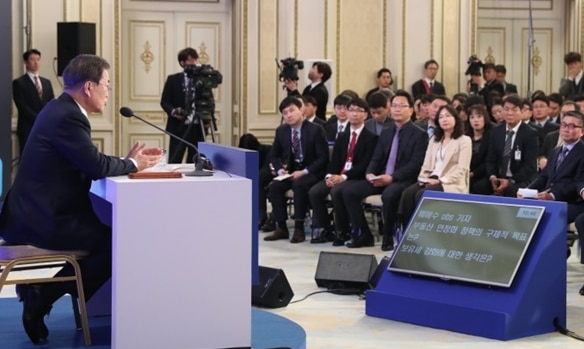 「言葉に詰まったら時間引っ張って」…文大統領年頭記者会見写真はフェイク