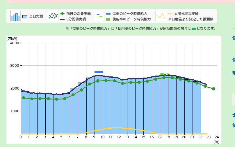 むしろ電気使用量が減っているところでピークになっている