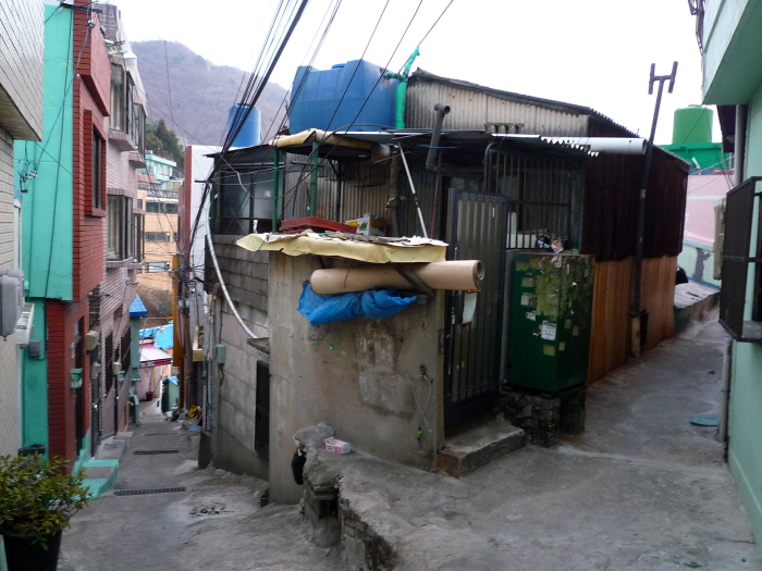 저 파란색 물탱크는 대체 언제까지 쓸거야? 부산 토인놈들 ㅉㅉ 한국이라고 하지마