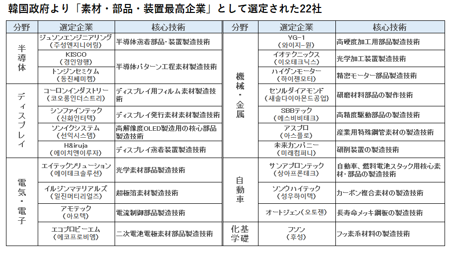 日本の輸出規制乗り越えた韓国経済の礎、「素材・部品・装備最高企業」22社を選定