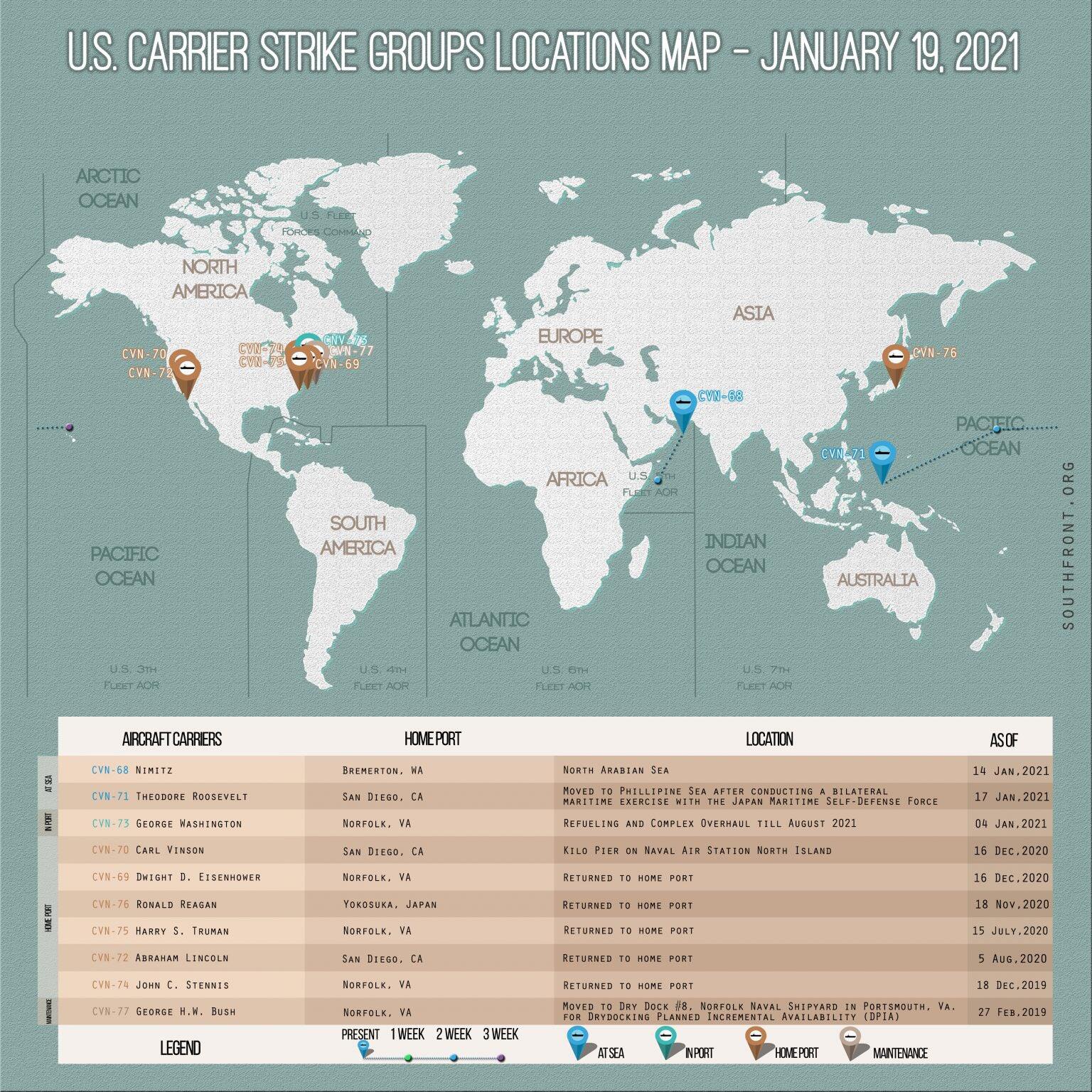 1/19 - 항모 집결 상황 서부에 2척, 동부에 5척