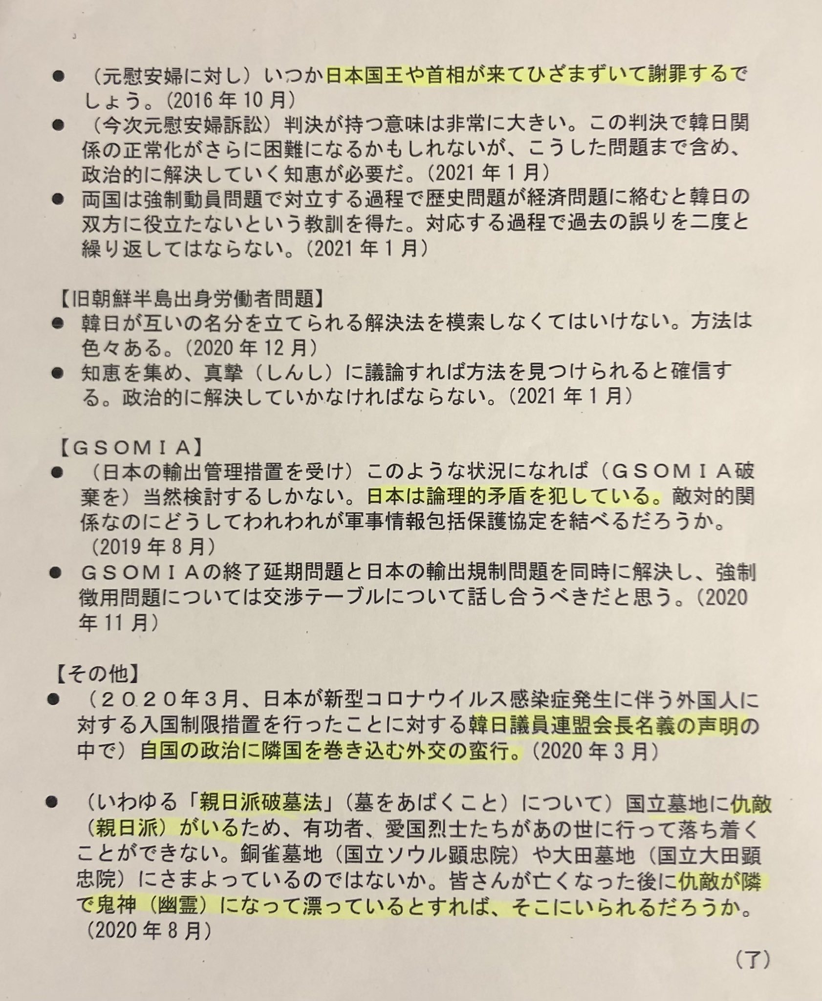 あと、ムンムンの日韓関係改善の努力って何かなぁ?