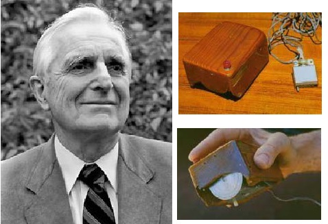 画像は、ダグラス・C・エンゲルバート氏(故人です。)と、世界初のマウス。
