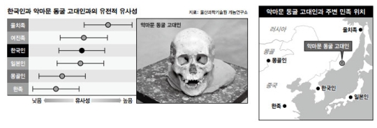 研究陣は正確な韓国人の民族祈願と構成を計算するために悪魔の文洞窟人と現存する東アジア地域50個余り人種の誘電体を比較した。 その結果悪魔の文洞窟に住んだ古代人と、現代ベトナムおよび台湾に孤立した原住民の誘電体を融合する場合、韓国人に最もよく表現された。 時代と生存方式が違った二つの南方系列の融合であったのを発見した瞬間だった。