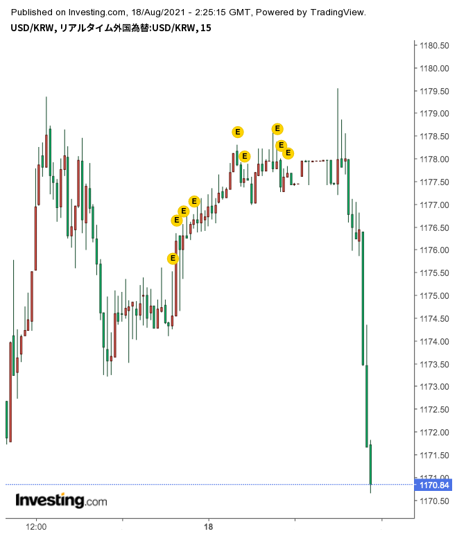⭕理解できないわ。ドル/ウォン相場も徐々に1200に近づいてるな。どうなるか見てみよう。