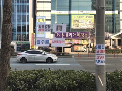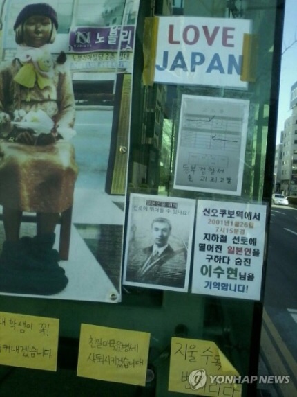 부산 소녀상 주변에 '일본 사랑하라' 불법 부착물 논란