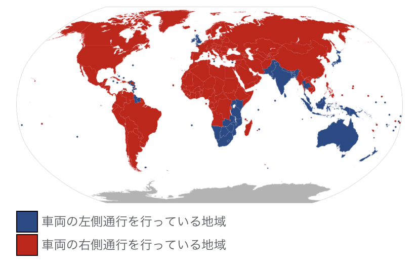 英国が陸は左側通行、海は右側通行に区別したんだよ、フランスやドイツの大陸国と植民地だった米国はイギリスに反発して陸も右側通行にしたんだね、ただし海は世界と繋がっているから海だけはそのまま右側通行なんだよ。
