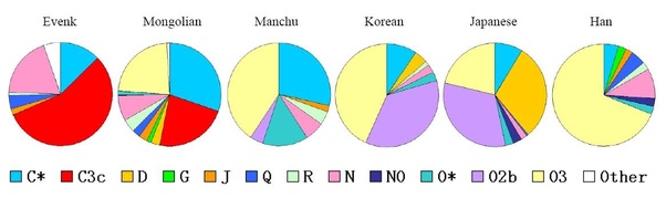 https://hereditasjournal.biomedcentral.com/articles/10.1186/s41065-018-0057-5日本人にすり寄りたい、韓国人の唯一の拠り所は、遺伝子O1b2(旧O2b)が、共通しているということ。しかしO1b2は、韓国と日本ではタイプが違い。朝鮮民族では約22%:約9%の割合で確認されるものが、日本国内では約8%:約24%の割合で確認されており比率がほぼ逆転する。この遺伝子は中国江南から山東半島から稲の文化を持ってきたとされる。最近の研究では、稲作は朝鮮より早いことが分かってきた。また、稲の遺伝子から江南から直接日本に来た可能性が高い。よって、O1b2が韓国から来たというのは、怪しい。韓国人と日本人の遺伝子距離を見ると韓国人は、満州人、華北人、東南アジアの順に近縁である。 言語は、比較言語学から7000以上に別れたと言われている。http://sciencetips.web.fc2.com/haplotype.html