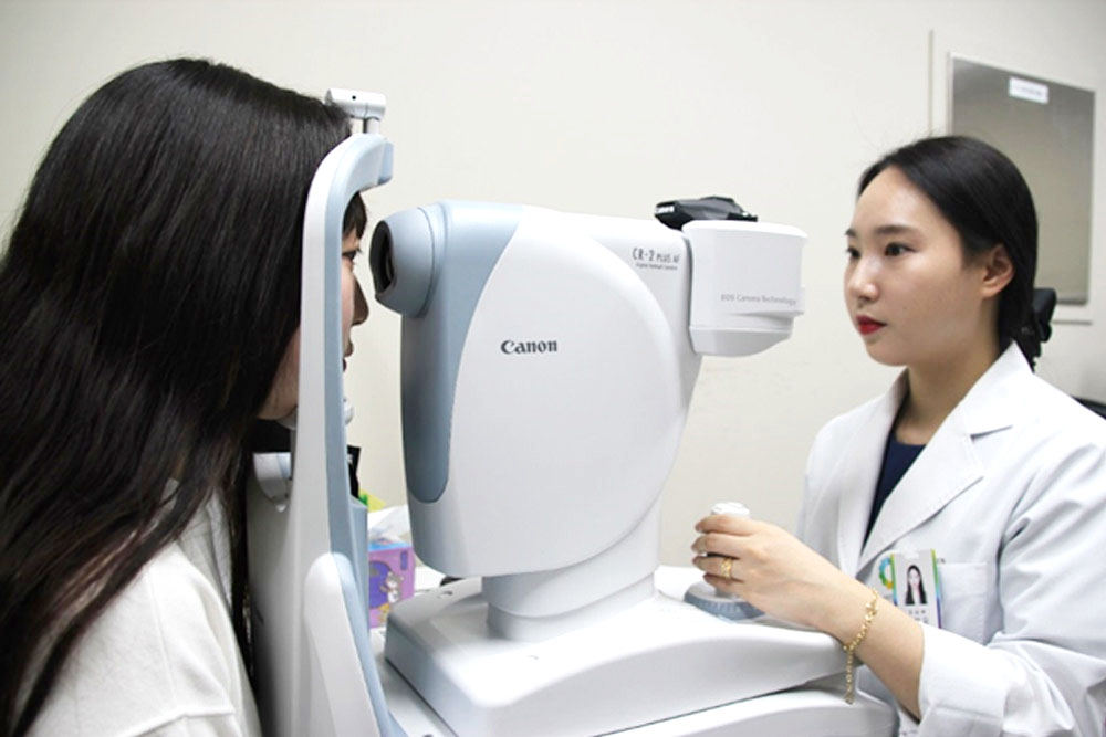 次に、眼科では、「キャノン」が制作した眼科検査機器で視力と眼の状態などを測定した。