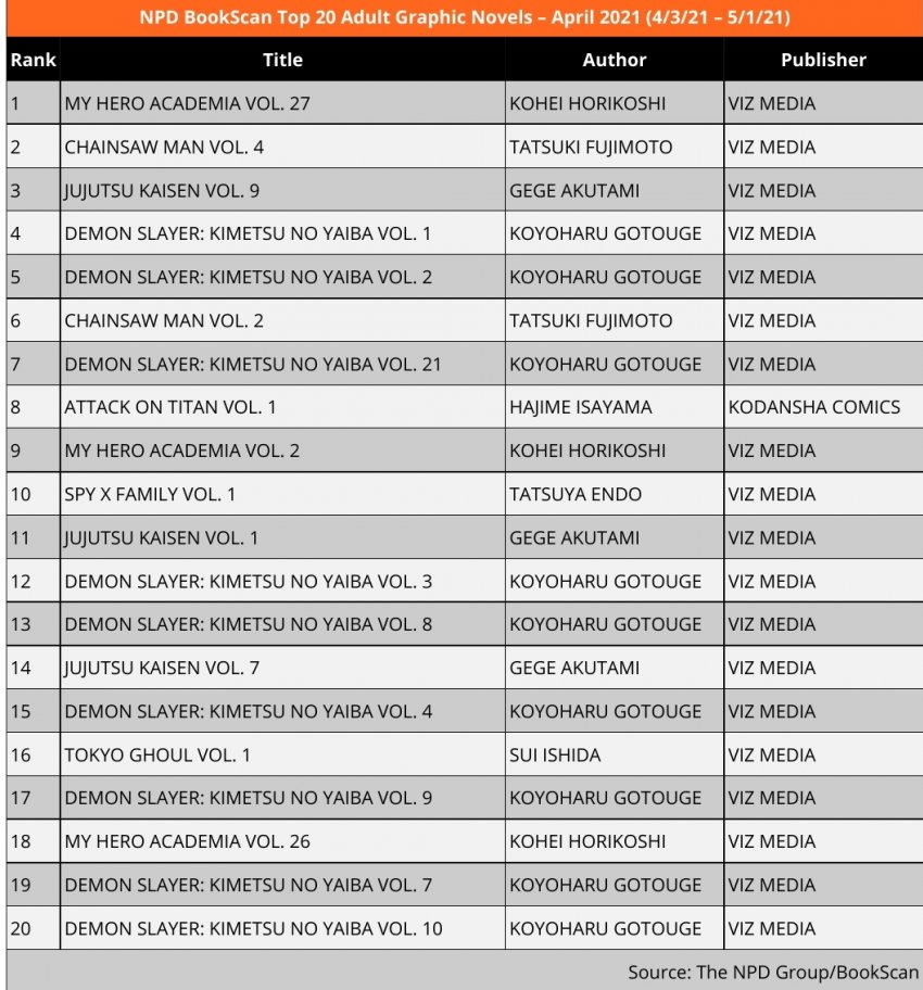 ↓米国の漫画市場の販売数1~20位は全部日本の漫画だけど…