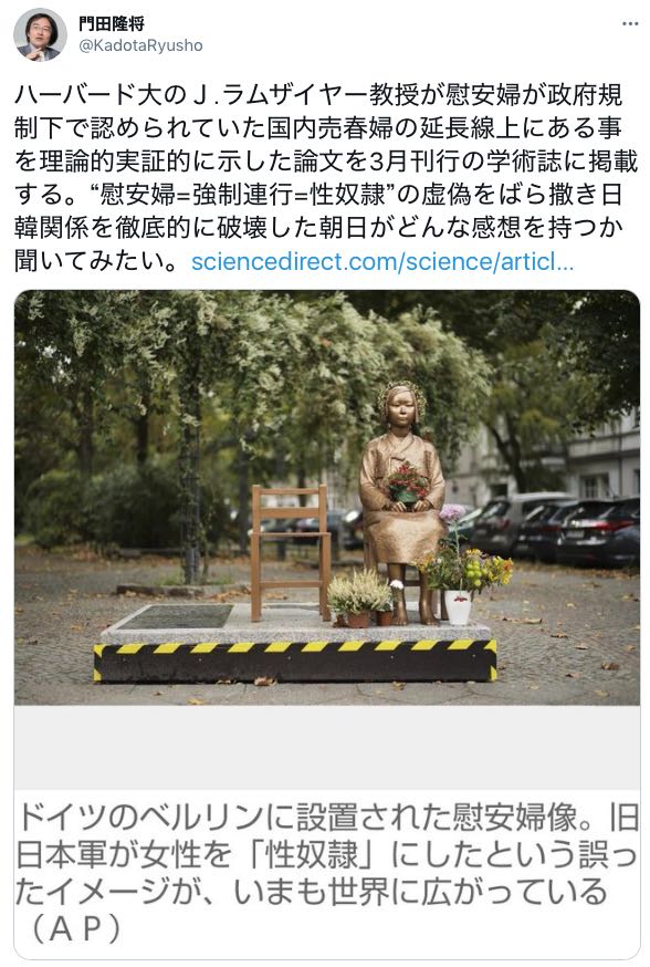 『【日韓】米ハーバード大教授が「慰安婦=性奴隷」説を否定する論文を発表「問題は朝鮮の募集業者にあった」』
