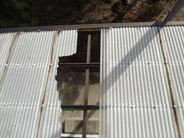 倉庫の屋根に30センチ四方の穴が空いてます
