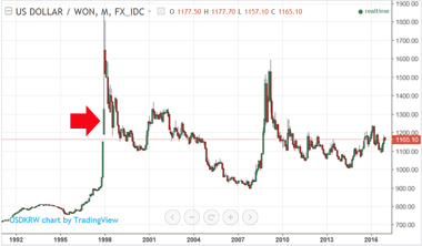 통계에 따르면, 1995년 이후 원/달러와 한국 수출간의 관계는 4차례 변화