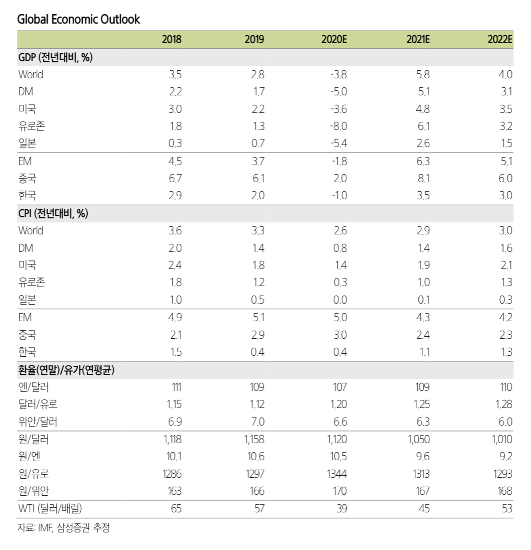 2021년에 3.5% 성장에 원달러 환율은 1050원 2022년엔 3%성장에 원달러 환율 1010원