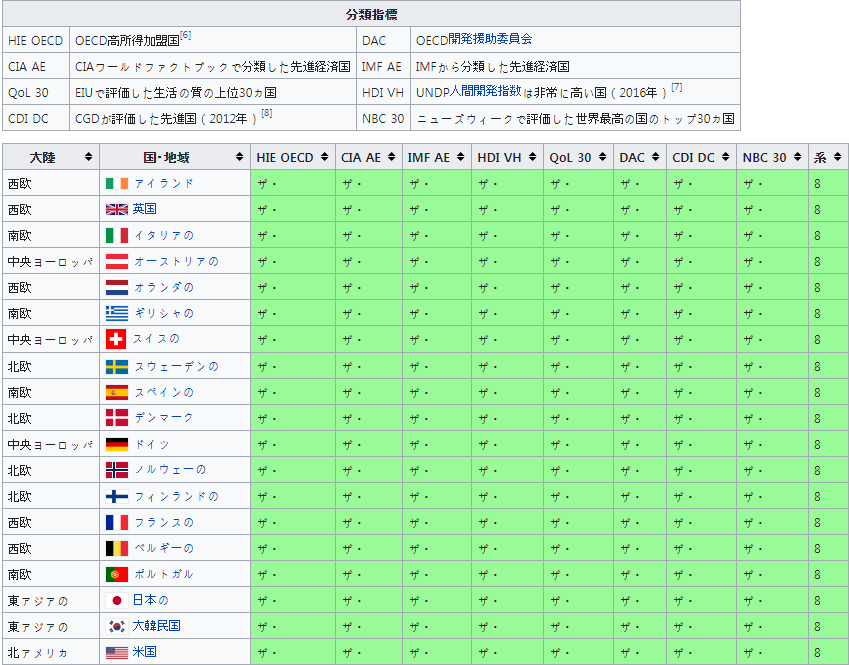 전세계 선진국 명단
