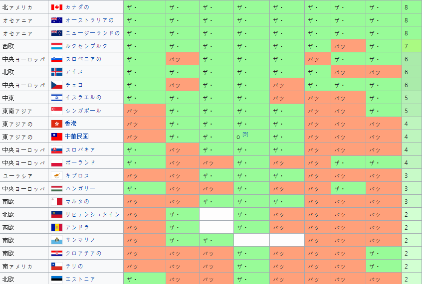 아시아: 대만, 마카오, 싱가포르, 이스라엘, 일본, 한국, 홍콩 (7개 국가 및 지역)