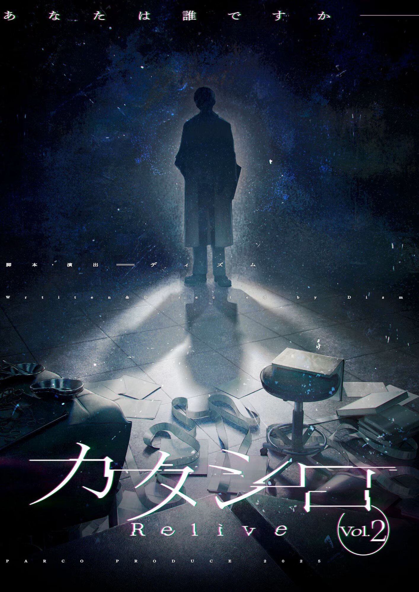 ディズム作による「カタシロ」は、今年8月にシナリオ誕生5周年を迎える人気TRPG(テーブルトークロールプレイングゲーム)。昨年末、PARCO GAMESとPARCO劇場がタッグを組み、「カタシロ」初の有観客舞台「カタシロ~Relive vol.1~」が上演された。舞台上では、まだ「カタシロ」をプレイしたことのないキャストが、記憶を失った“患者”役となり、“医者”役と対話しながら、自身の内面と向き合うストーリーを紡いでいく。