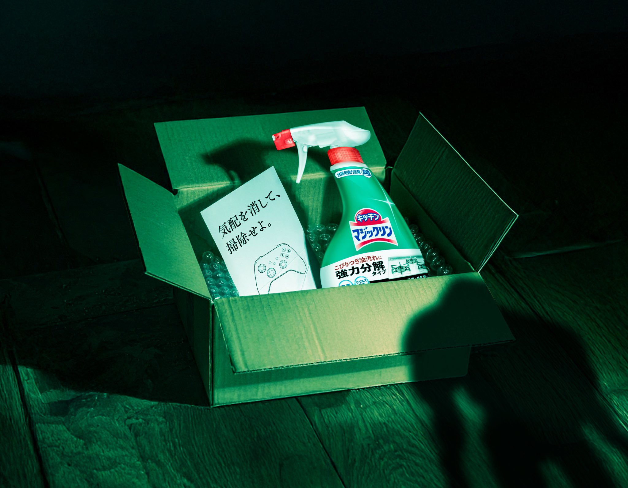 「気配を消して、掃除せよ。」花王のおそうじ道具を使った、3D探索型ホラーアクション+清掃シミュレーションゲーム。宅内を清掃し、かつ謎を解きながら脱出せよ。清掃率や脱出時間により、家の査定価格が変わる異色のホラーゲーム。