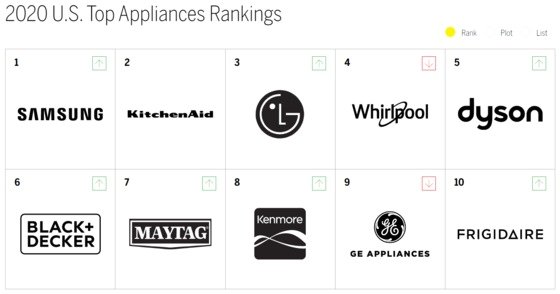 또 삼성과 가전 시장 경쟁관계인 LG전자도 3위에 올라 국내 기업에 대한 미국 소비자들의 호평이 다시 한번 확인된 셈이다.