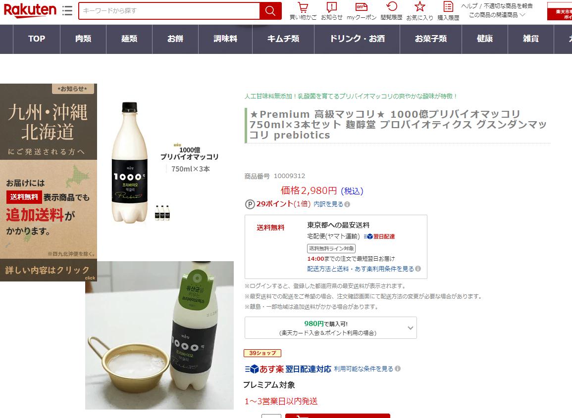 つまり、750mlが、1万ウォン(日本円で千円でそ)