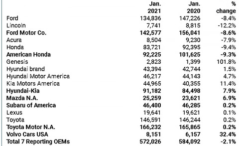 【米国】1月の新車発売、日本車が韓国車の約4.5倍売れる