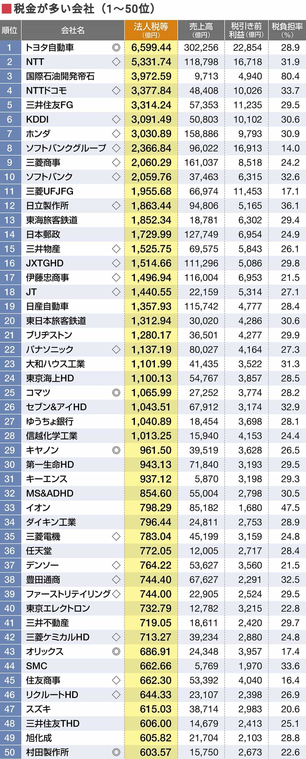 結局はさ、チョン企業なんだよ。 「税金を多く納めている」TOP100社ランキング